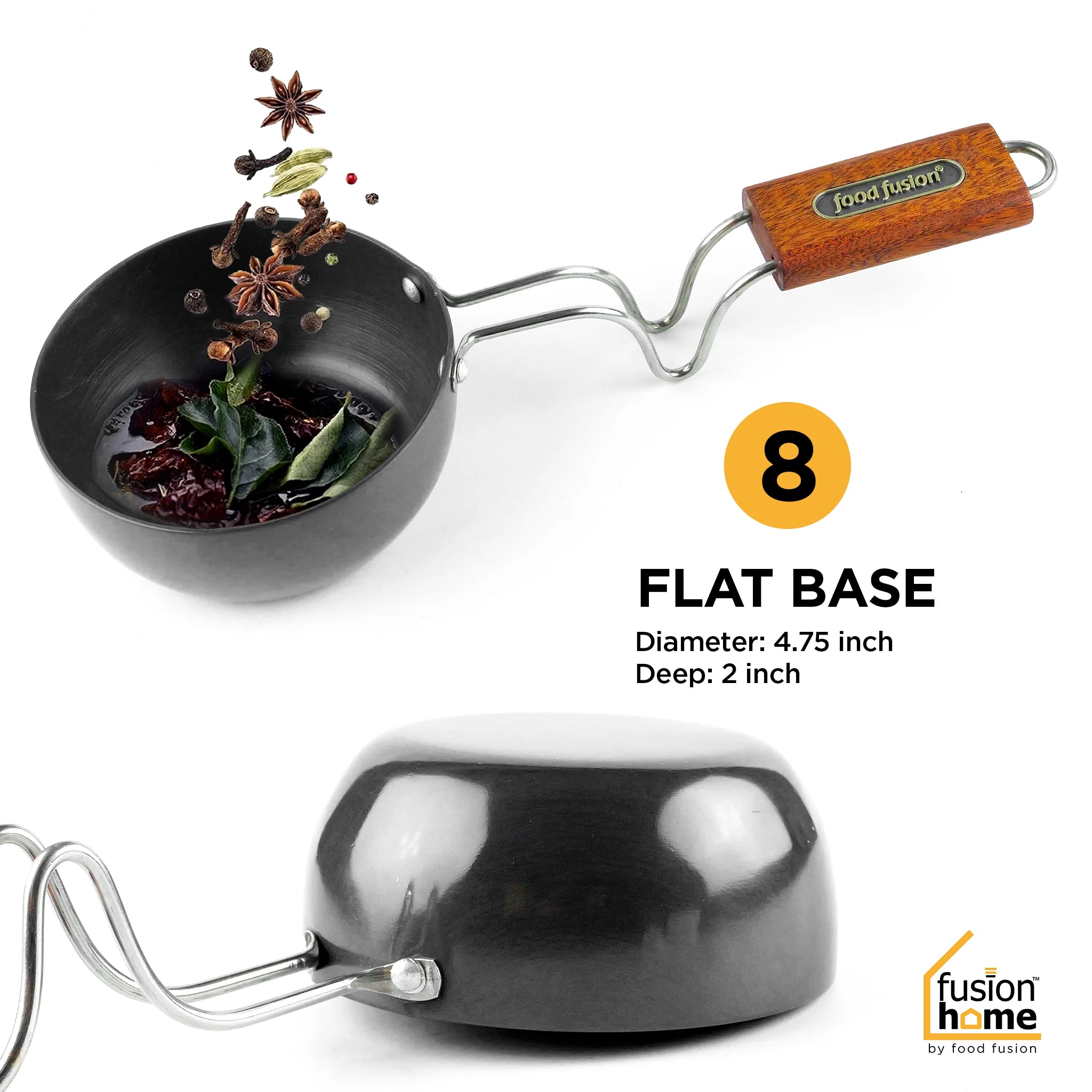 Unlock the true flavors of your desi cuisine with the Hard Anodized Tarka Pan. Its clever, curved design ensures ingredients are fully immersed in less oil, guaranteeing a consistently sizzling and aromatic tarka. Say goodbye to uneven seasoning and hello to perfectly tempered spices that elevate every dish. Crafted with a durable hard anodized finish for lasting performance, this simple yet effective pan is a must for any desi kitchen.